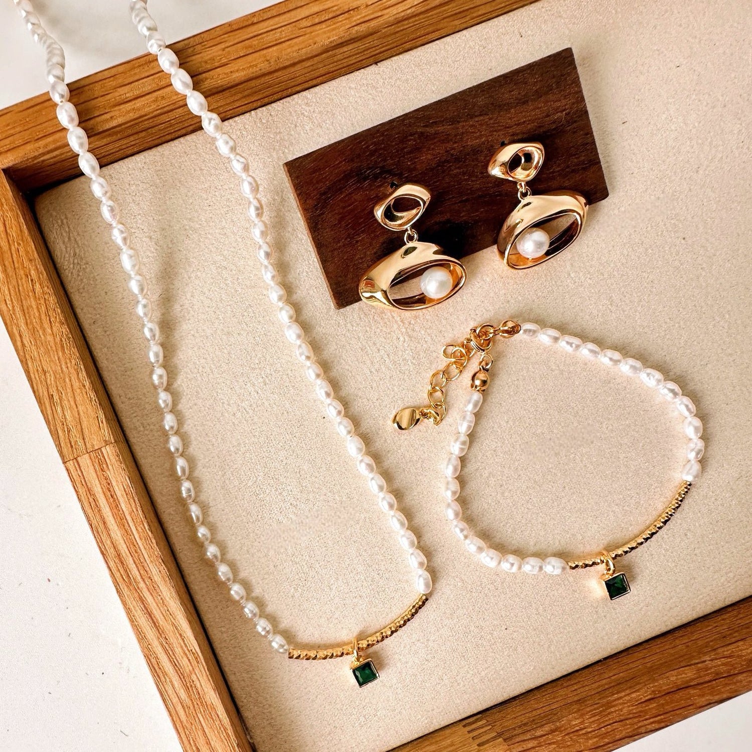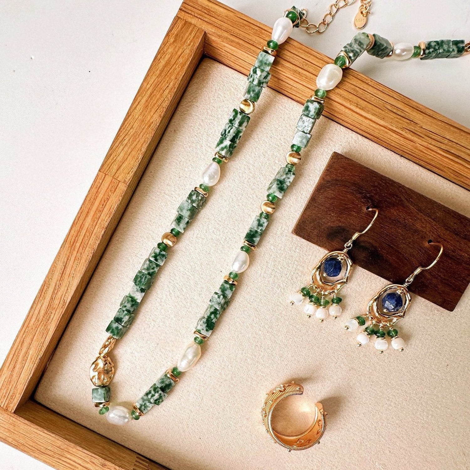 Featuring vibrant green stones, lustrous baroque pearls, and fine gold accents, each piece tells a story of elegance and uniqueness.